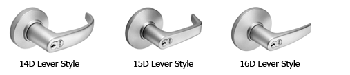 Lever handles - Lever handles are a high-quality zinc alloy. Trim components are brass or bronze. Body is approximately 5/8" in diameter; Handle is approximately 4 3/4" long (from center-line of chassis). #14 and #15 levers conform to California Administrative Code Title 19 and Title 24. All three styles of levers conform to the Illinois Accessibility Standard.