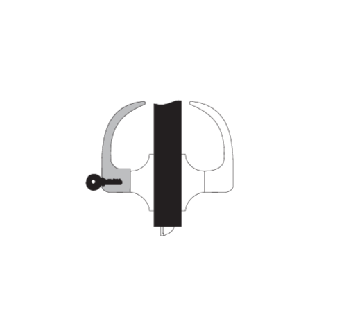 For use on storeroom, utility, and exit doors. Deadlocking latchbolt. Latchbolt operated by lever inside, key in outside lever. Outside lever always locked.* Inside lever always active.