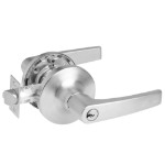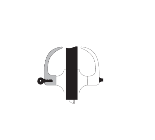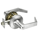 For entrance, general home or office doors. Deadlocking latchbolt. Either lever operates latchbolt (except when outside lever is locked from inside).* Pushing turn button in inside lever locks outside lever, and automatically releases when inside lever is turned or key is rotated in locked outside lever. Outside lever may be retained in locked position by pushing and rotating turn button 90clockwise to a horizontal position; not released until turn button is manually returned to the vertical position. Latchbolt is operated by key in outside lever or by rotating inside lever. Inside lever always active.