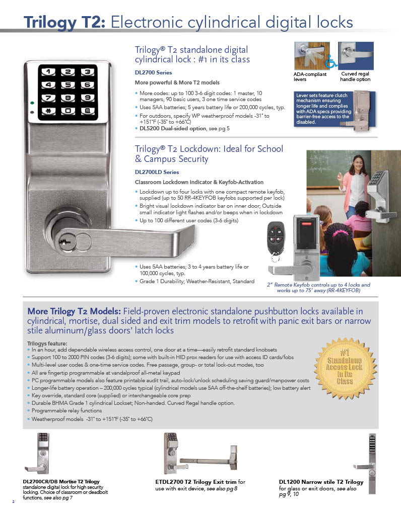 - Alarm Lock Trilogy DL2700IC 26D Electronic Digital Lock - Accepts IC Core - Satin Chrome