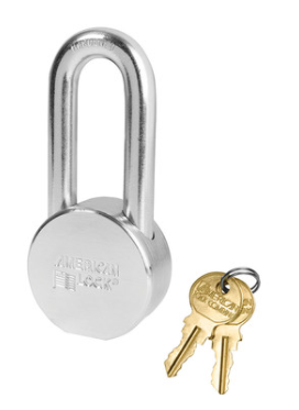 The American Lock No. AH11 Solid Steel padlock features a 2in (51mm) wide case hardened solid steel body and a 2in (51mm) tall, 7/16in (11mm) diameter nickel plated hardened boron alloy shackle for superior cut resistance. Dual ball bearing locking mechanism resists pulling and prying and a debris resistant, rekeyable cylinder performs extremely well in external applications.