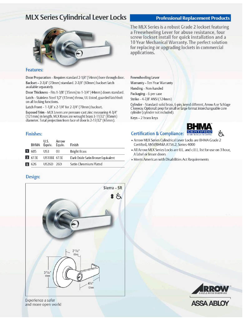 - Arrow MLX08 SR - Grade 2 Single Dummy Lever Trim