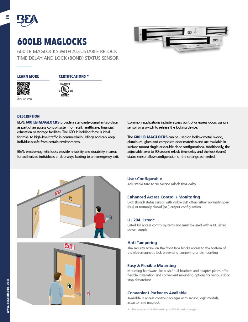 DESCRIPTION BEA's UL LISTED MAGLOCKS provide a standards compliant locking solution for retail, healthcare, banking and other high security facilities that require UL Listed security products. maglocks can be used on hollow metal, wood, aluminum, glass and composite door materials.