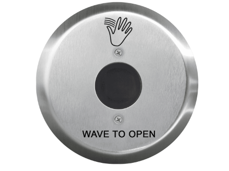 Camden CM-324/41R SureWave CM-324 Series Touchless Switch, 1" to 30" Range, 1 Relay, Round 6" Stainless Steel Hand Icon/'Wave to Open' Text Faceplate, Black Finish