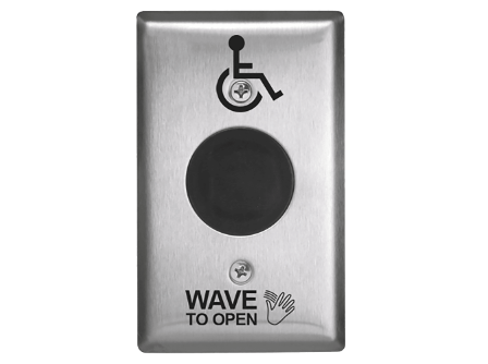 Camden CM-325/42S SureWave Touchless Switch, 2" to 18" Range, 1 Relay, Single Gang Stainless Steel Hand Icon/'Wave to Open' Text/Wheelchair Symbol Faceplate, Stainless Steel Finish