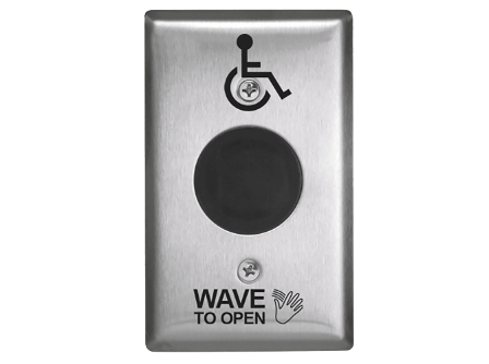 Camden CM-331/42S SureWave Touchless Switch, 1" to 28" Range, 1 Relay, Single Gang Stainless Steel Hand Icon/'Wave to Open' Text Faceplate, Stainless Steel Finish