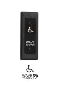 These line powered touchless switches offer an adjustable operating range, selectable motion sensing and relay operating modes, hold open timer(s), REX and door position inputs, and the option for a light ring and wireless transmitter.