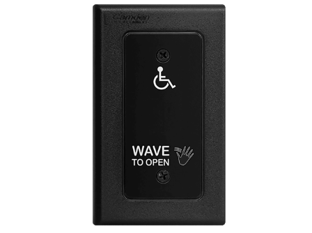 Camden CM-333/42 SureWave Touchless Switch, 1" to 12" Range, 1 Relay, Single Gang Hand Icon/'Wave to Open' Text/Wheelchair Symbol Faceplate, Includes 2 'AA' Alkaline Batteries