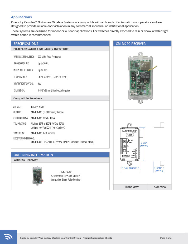 - Camden CM-RX90 Kinetic/Lazerpoint Advanced 1 Relay Receiver