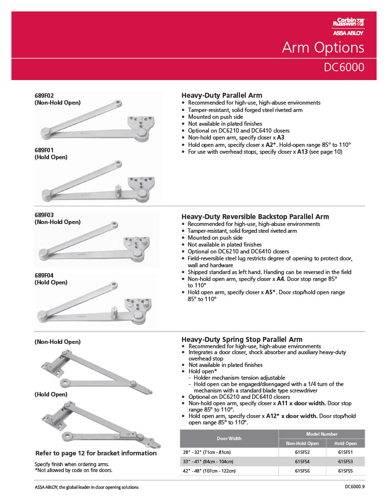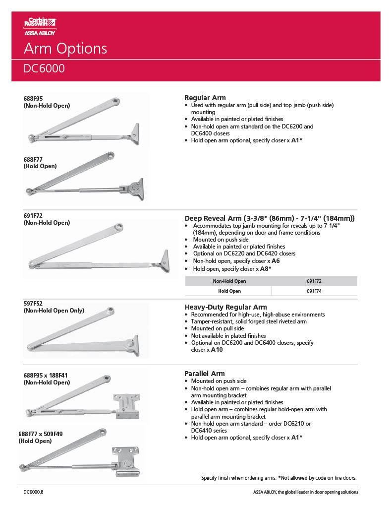 **Barrier-Free CodeCompliance:The DC6000 Series Door Closers listed below conform to the 5 lbf. maximum door opening force requirement for non-fire-rated interior hinged doors, according to:
