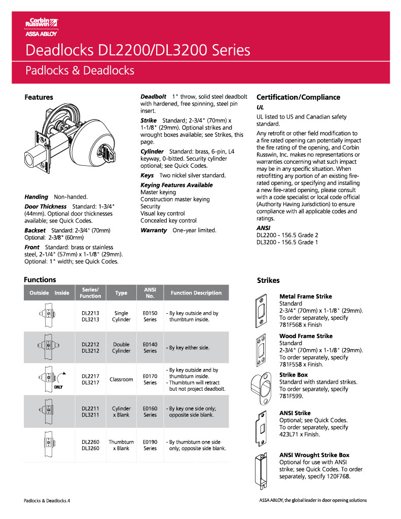 CorbinRusswinDL2212, Corbin Russwin DL2212, DL2212, DL2212 Corbin Russwin, DL2212CorbinRusswin, Corbin Russwin DL2212 Deadlock, Corbin Russwin Deadlock