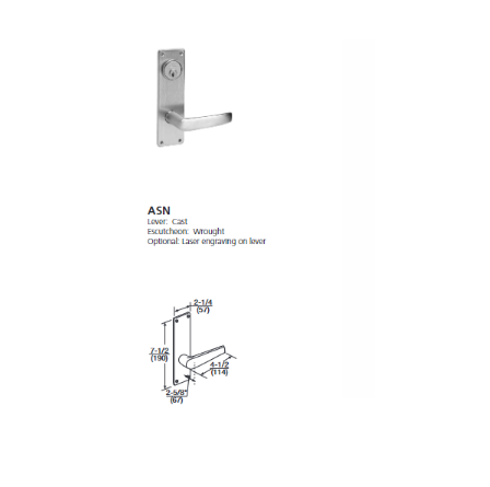 *Strike:*Wrought brass, bronze or stainless steel, ANSI straight lip standard, 4-7/8" (124mm) x 1-1/4" (32mm) x 1-1/8" (29mm) lip to center. Optional strikes, lip lengths and ANSI wrought strike box available
