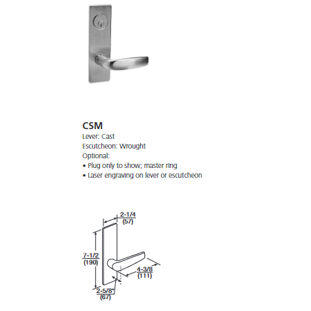 Model: Corbin Russwin ML2020CSM, ML2020CSM613, ML2020CSM626, ML2020CSM722, ML2020CSM612
