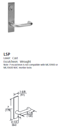 *Strike:*Wrought brass, bronze or stainless steel, ANSI straight lip standard, 4-7/8" (124mm) x 1-1/4" (32mm) x 1-1/8" (29mm) lip to center. Optional strikes, lip lengths and ANSI wrought strike box available