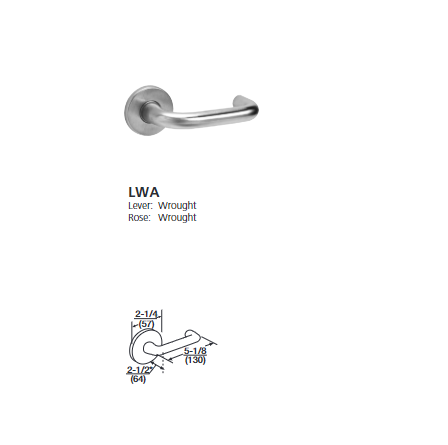 *Strike:*Wrought brass, bronze or stainless steel, ANSI straight lip standard, 4-7/8" (124mm) x 1-1/4" (32mm) x 1-1/8" (29mm) lip to center. Optional strikes, lip lengths and ANSI wrought strike box available