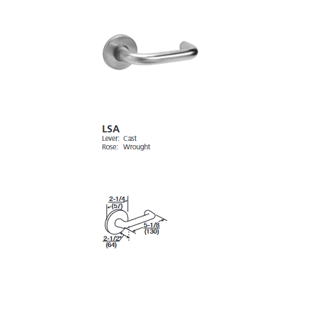 *Strike:*Wrought brass, bronze or stainless steel, ANSI straight lip standard, 4-7/8" (124mm) x 1-1/4" (32mm) x 1-1/8" (29mm) lip to center. Optional strikes, lip lengths and ANSI wrought strike box available