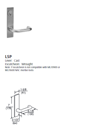 *Strike:*Wrought brass, bronze or stainless steel, ANSI straight lip standard, 4-7/8" (124mm) x 1-1/4" (32mm) x 1-1/8" (29mm) lip to center. Optional strikes, lip lengths and ANSI wrought strike box available