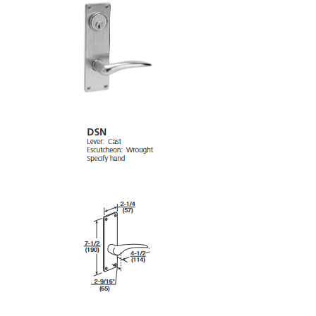 *Strike:*Wrought brass, bronze or stainless steel, ANSI straight lip standard, 4-7/8" (124mm) x 1-1/4" (32mm) x 1-1/8" (29mm) lip to center. Optional strikes, lip lengths and ANSI wrought strike box available