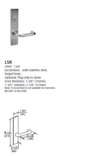 Corbin Russwin ML2065 LSR Dormitory or Entrance Mortise Lock, LS Lever, R Escutcheon
