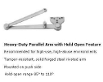 Mounting Styles:Includes all screws and brackets for Regular, Top Jamb and Parallel Arm Installations