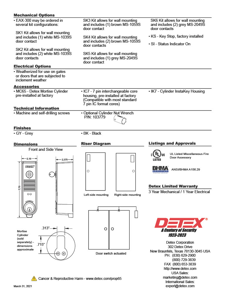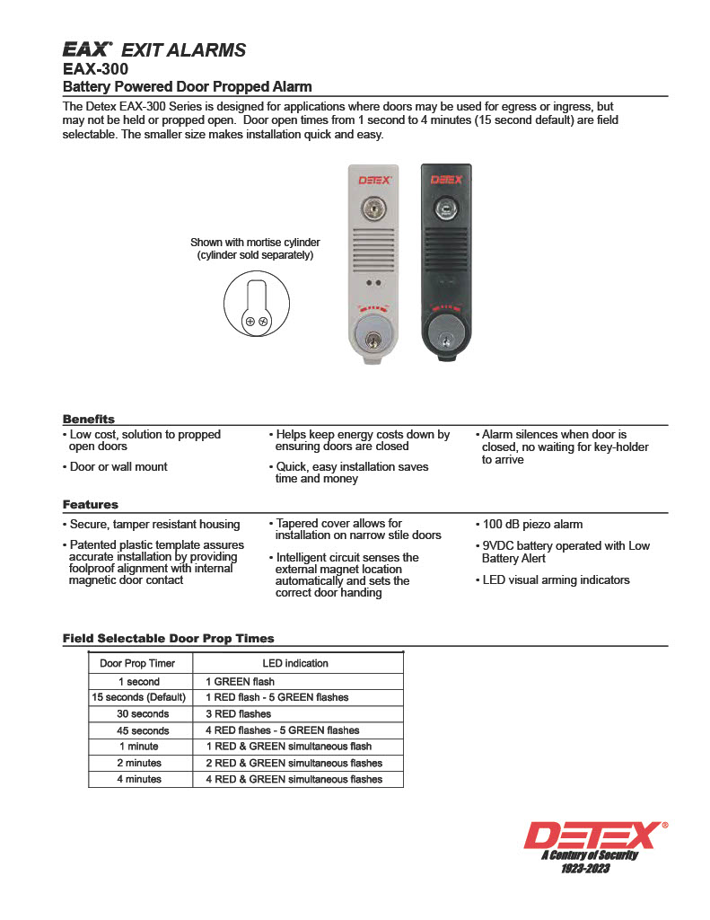 - Detex EAX-300SK5 GRAY Door Prop Alarm, Surface Mount, Battery Powered, One MS-2049S Magnetic Switches, Gray