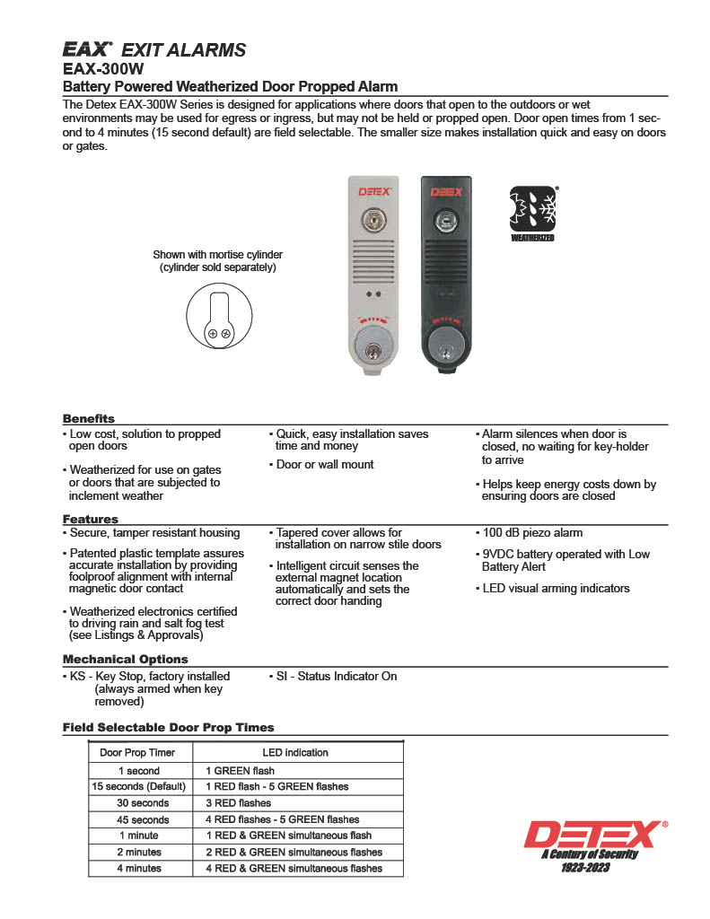- Detex EAX-300W Battery Powered Weatherized Door Propped Alarm - Gray