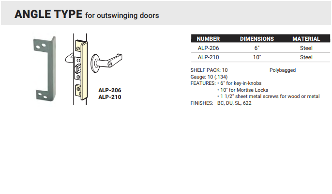 - Don-Jo ALP-210-SL Angle Type For Outswinging Doors - Silver Coated - 10"