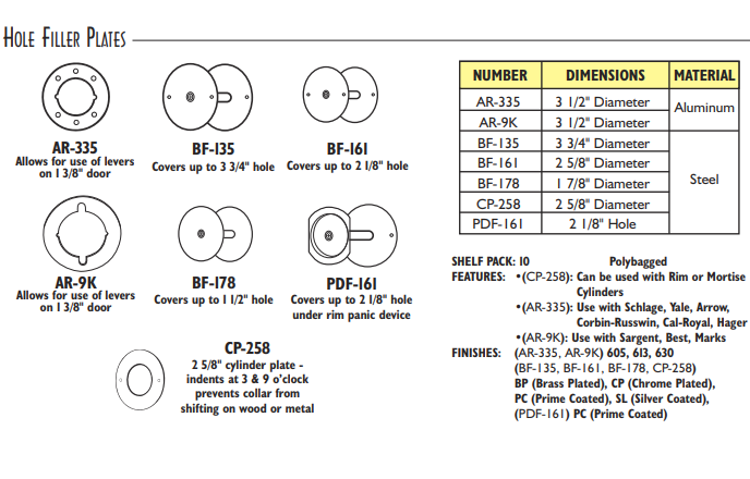 - Don-Jo BF-178-BP Hole Filler Plates - Covers up to 1-1/2" hole - Brass Plated - 1-7/8"