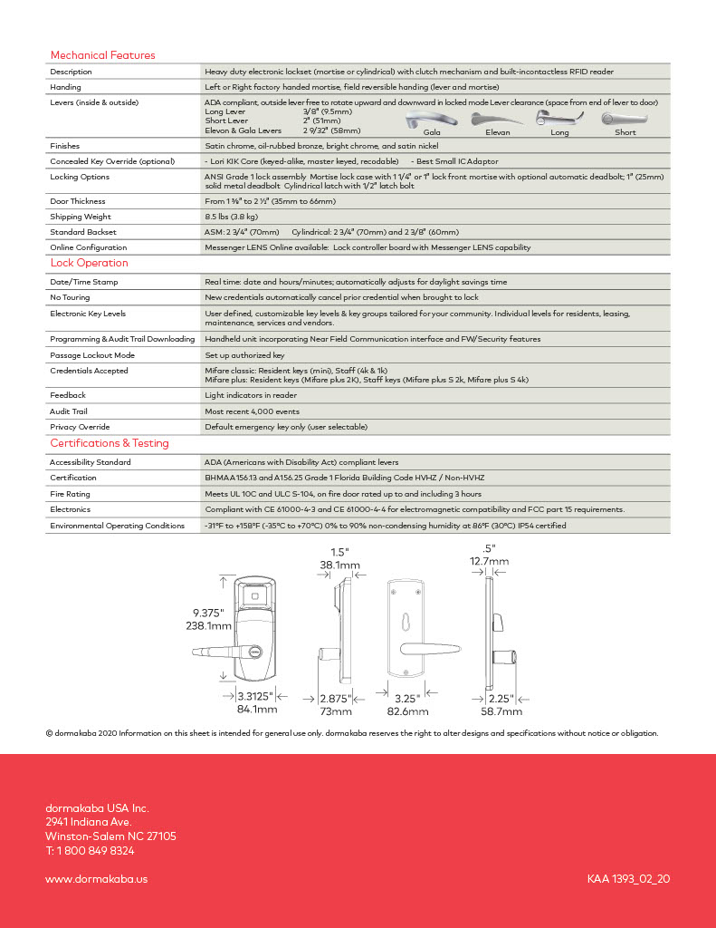 ADA compliant, outside lever free to rotate upward and downward in locked mode. Lever clearance (space from end of lever to door):
