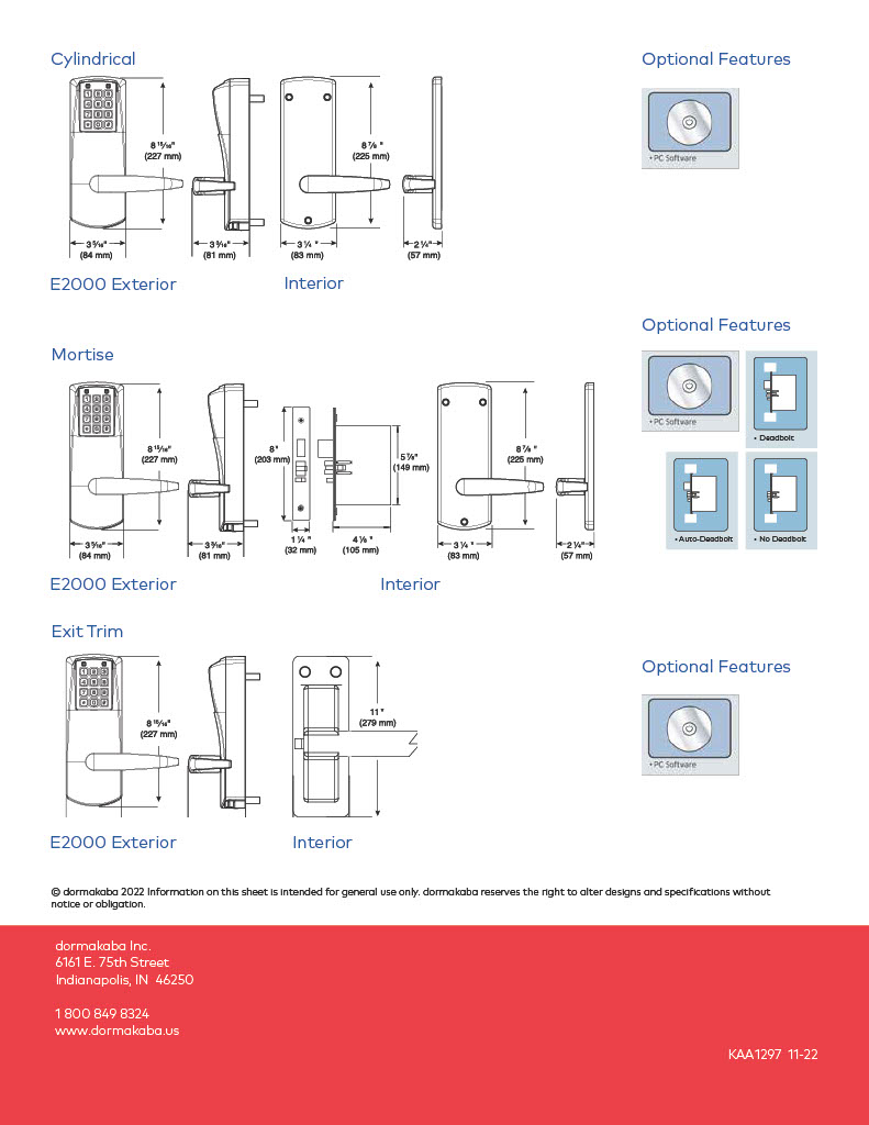 - DormaKaba E2031BLL-U13-41 E-Plex 2000 Cylindrical Lock, 100 Access Codes, 1,000 Audit Events, 2-3/4" Backset, 1/2" Throw, 6/7-Pin SFIC Prep, Less Core, Dark Bronze
