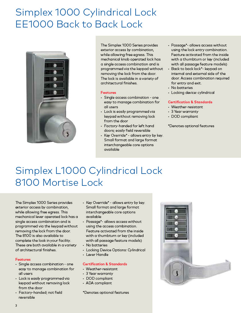 In StockDormakaba Simplex 1031-26D Pushbutton Lock w/Passage Feature, Satin Chrome