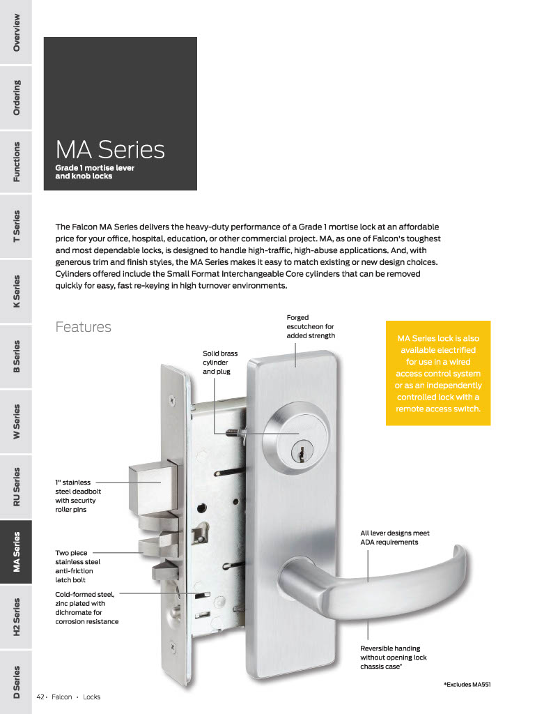 Electrified Functions:Available in 12 or 24 VDC. ANSI/BHMA: Meets ANSI/BHMA 156.13, Series 1000.