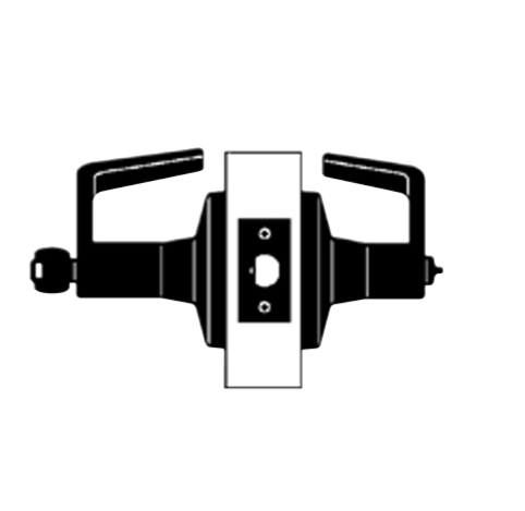 Turn button locking. Turning button locks outside lever requiring use of key until button is manually unlocked. Inside lever always free. Deadlocking latch bolt.
