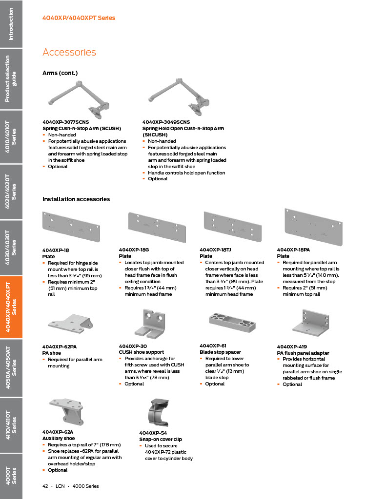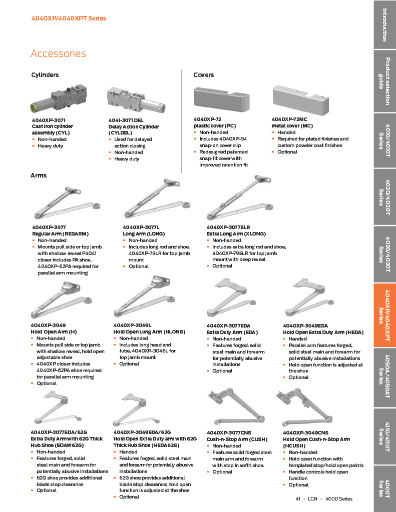 LCN 4040XP Rw/PA- Heavy Duty Door Closer, regular arm with PA bracket