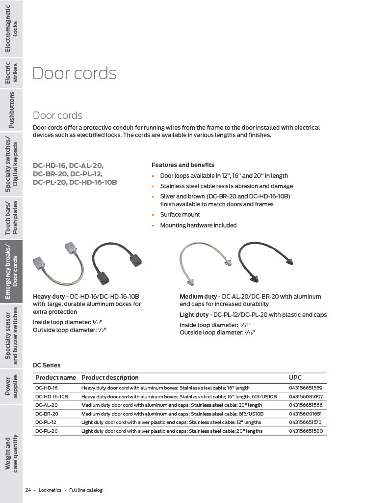 - Locknetics DC-HD-16 Door Cord, Heavy Duty, 16" Stainless Steel Cable, Aluminum Caps