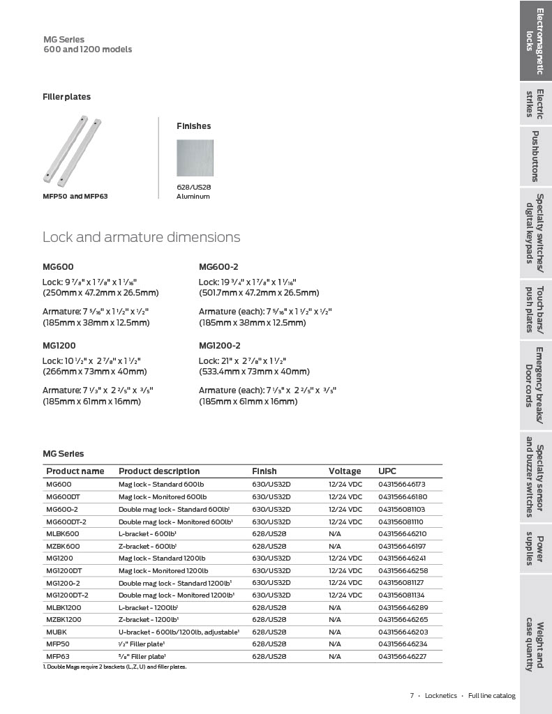 - Locknetics MG1200DT Maglock, 1200Lb Holding Force, 12/24VDC, Door Status, Satin Stainless Steel