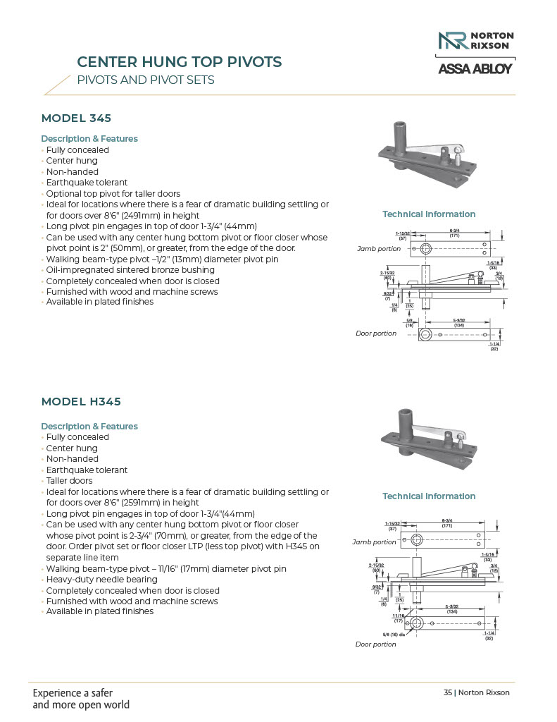 - Norton Rixson 345 Center Hung Long Throw Pin Top Pivot