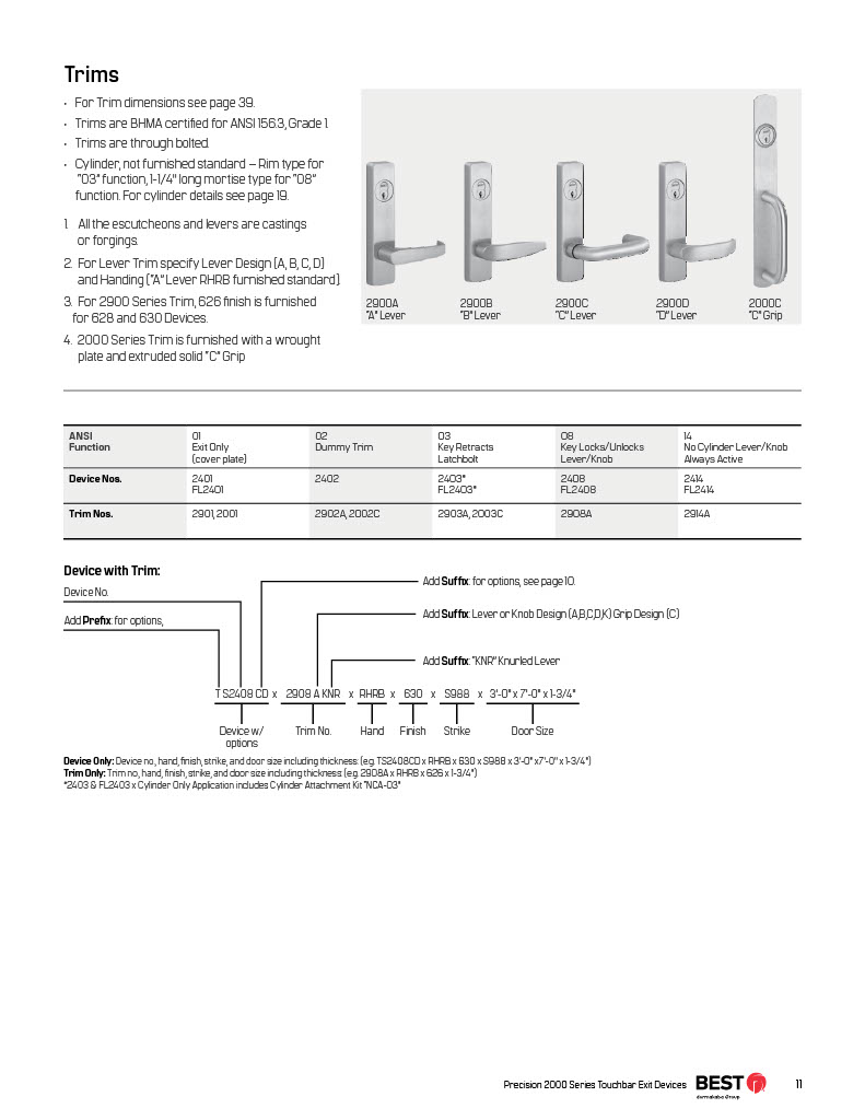 Base Material:The Cover, Touchbar, Device Channel, Lock/Hinge Side Filler and End Cap are furnished of heavy wrought Brass, Bronze or Stainless Steel. 628 Devices are furnished with Aluminum, Brass, Bronze and Stainless Steel components.
