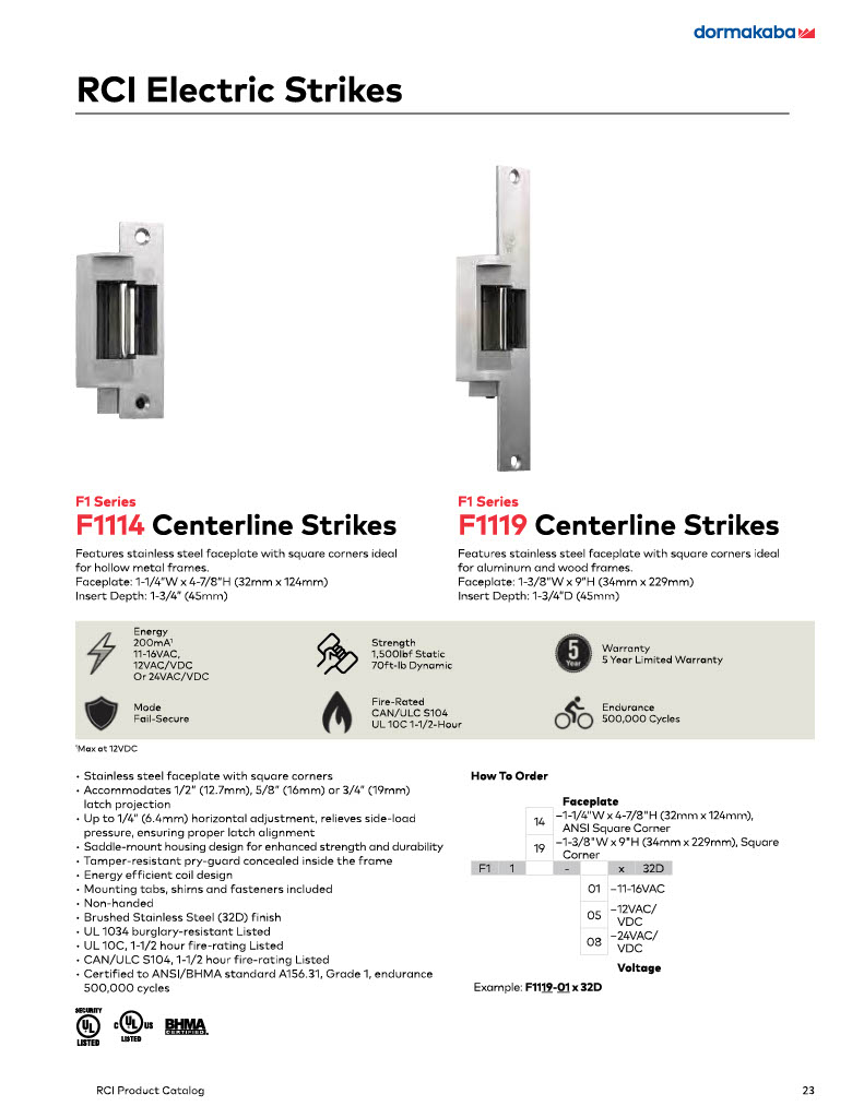 - RCI F1119-32D Centerline Electric Strike For Aluminum And Wood Frames- Satin Stainless Steel