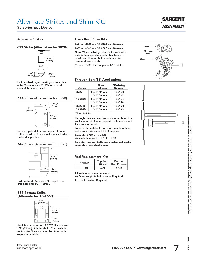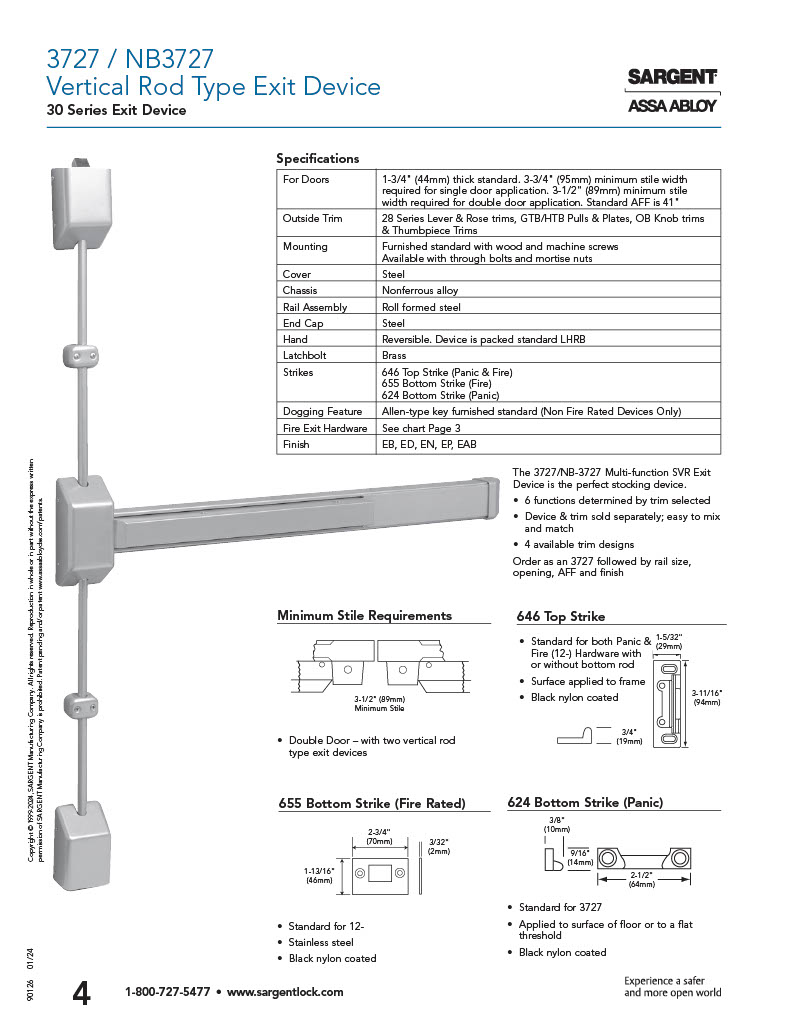 - Sargent 12-3727-G-EN Fire Rated Vertical Rod Exit Device - 48" - Aluminum