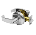 Deadlocking latch Latch by either lever unless outside lever is locked by push/turn button in inside lever Push button released by key outside or lever inside Turn button must be released manually Key retracts latch when outside lever is locked