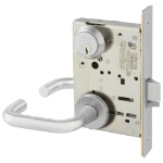 Power ON, locks outside leverSpecify voltage: 12VDC or 24VDC (operates from 12-24VDC)Key outside retracts latchboltLever outside retracts latchbolt, except when lockedLever outside can only be locked electronicallyLever inside always retracts latchboltAuxiliary deadlatch