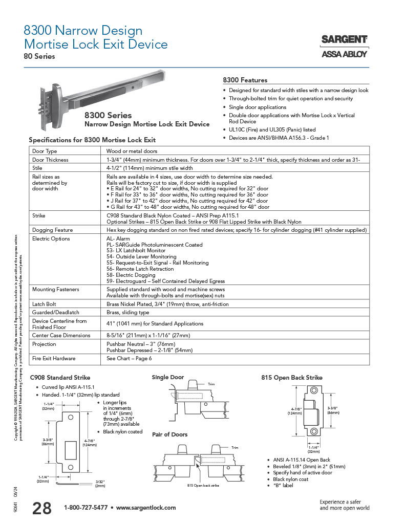 Door TypesWood or metal 1 3/4" (44mm) minimum thickness.