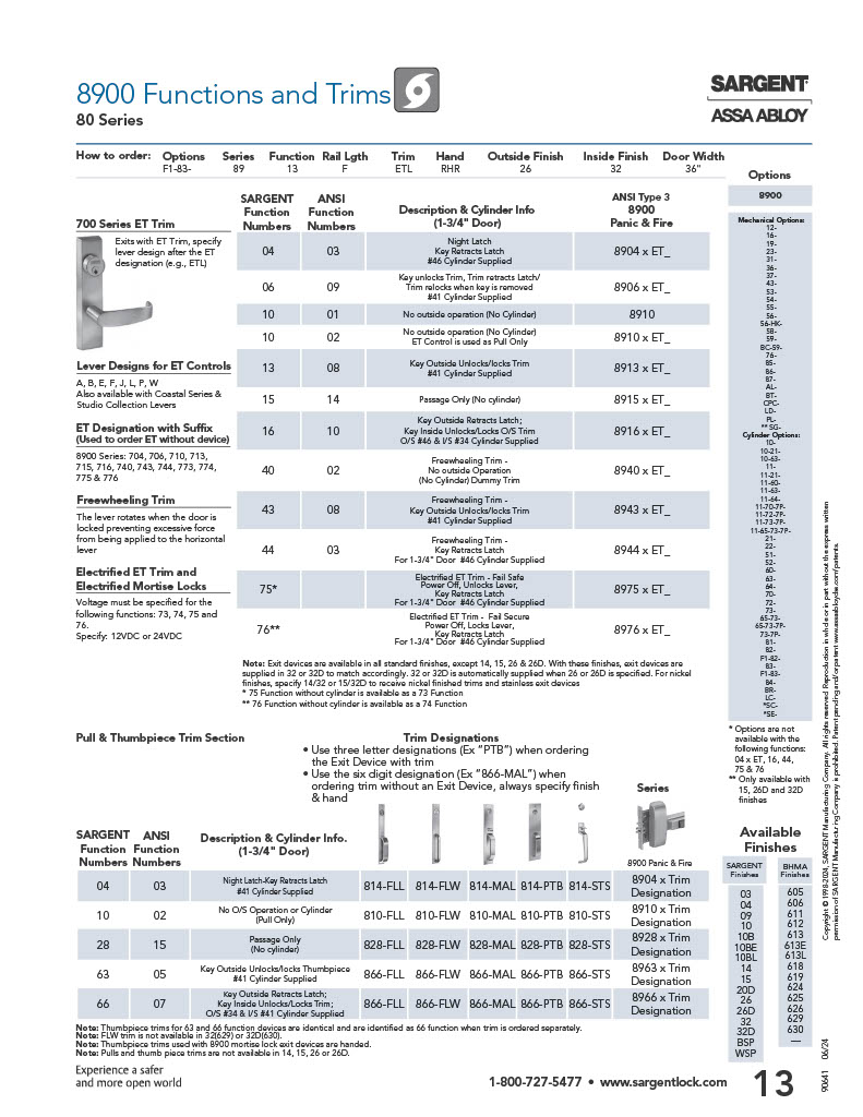 Designed for standard width stile applications on wood and metal doors Concealed single point guarded latching for additional security Single door applications Double door applications with Vertical Rod Devices are ANSI A156.3 - Grade 1 UL Fire and Panic listedDoor TypesWood or metal 1-3/4" (44 mm) minimum thickness.