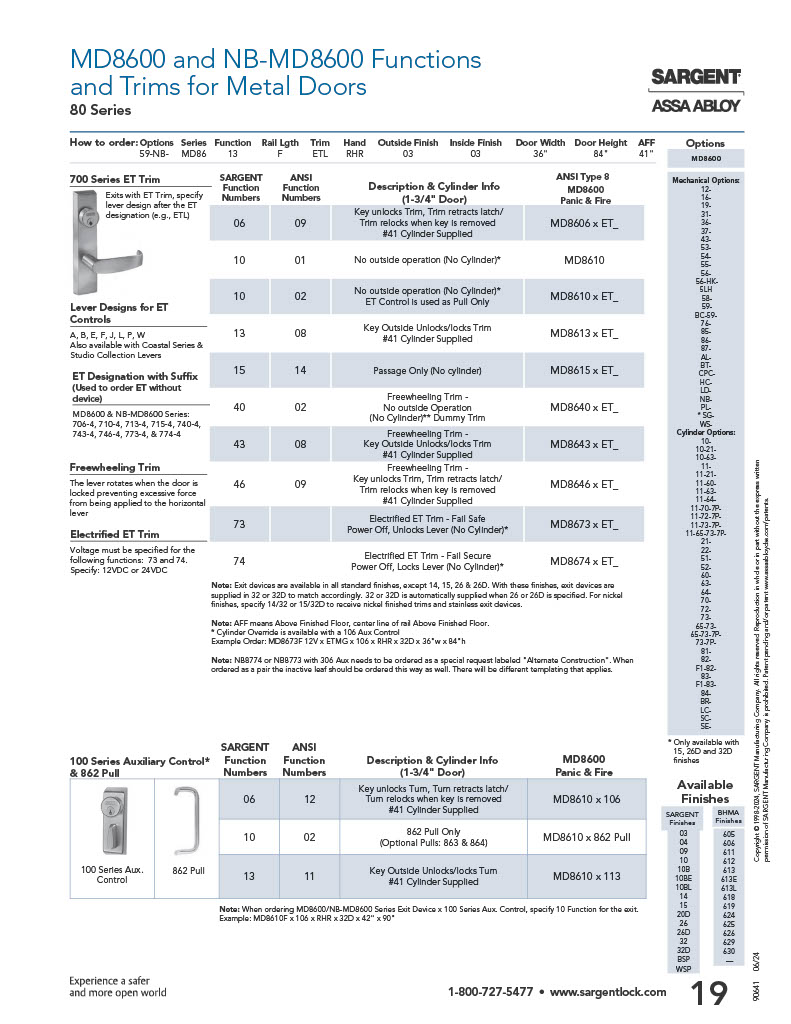 Model:Sargent Md8610F, 12-Md-8610-F, Md-8610-F-32D, Md8610F-10B, Md-8610-F-10, Md8610-F-10, Md8610F10B, Md8610F32D