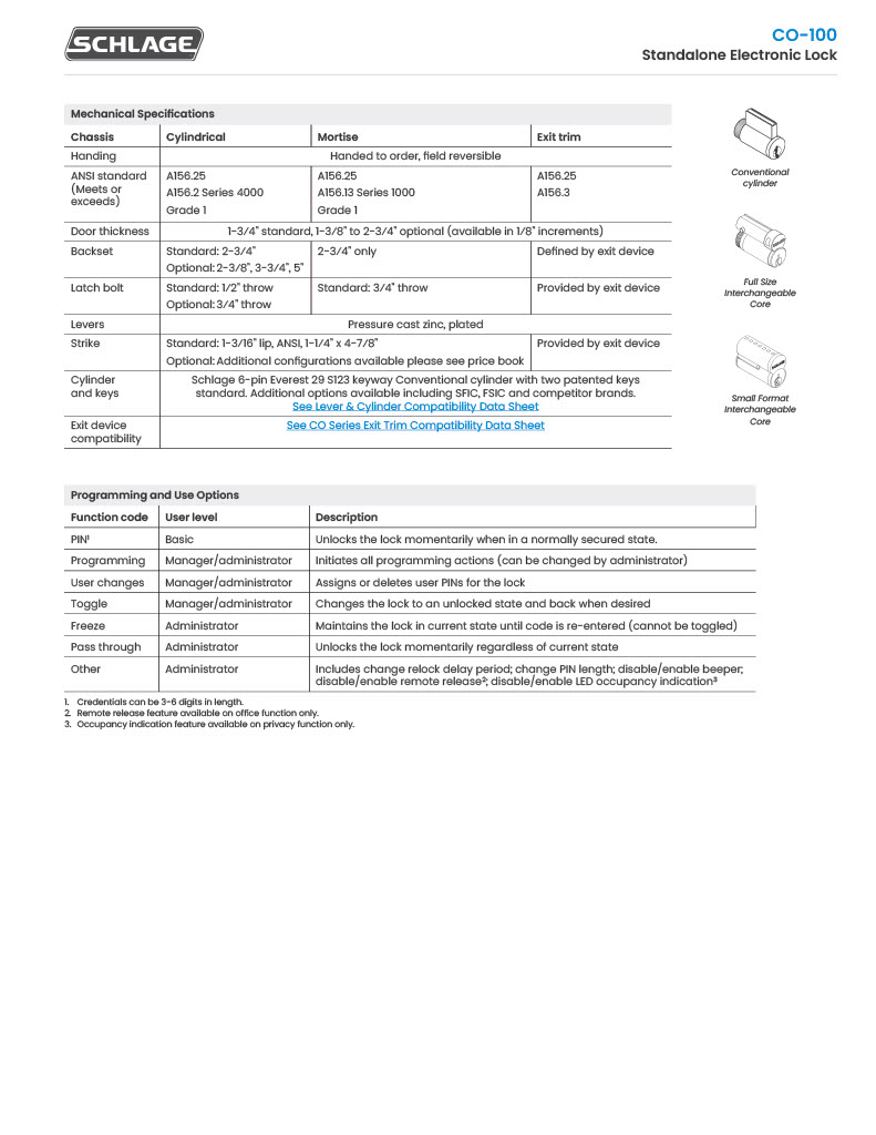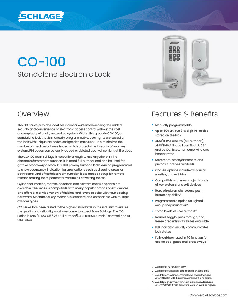 - Schlage CO-100-CY-70-KP Cylindrical Keypad Electronic Lock - Classroom / Storeroom Function