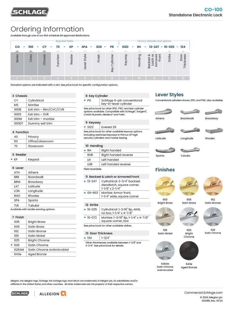 In StockSchlage CO-100-CY-70-KP-ATH-626 Electronic Lock - Athens Lever - Satin Chrome