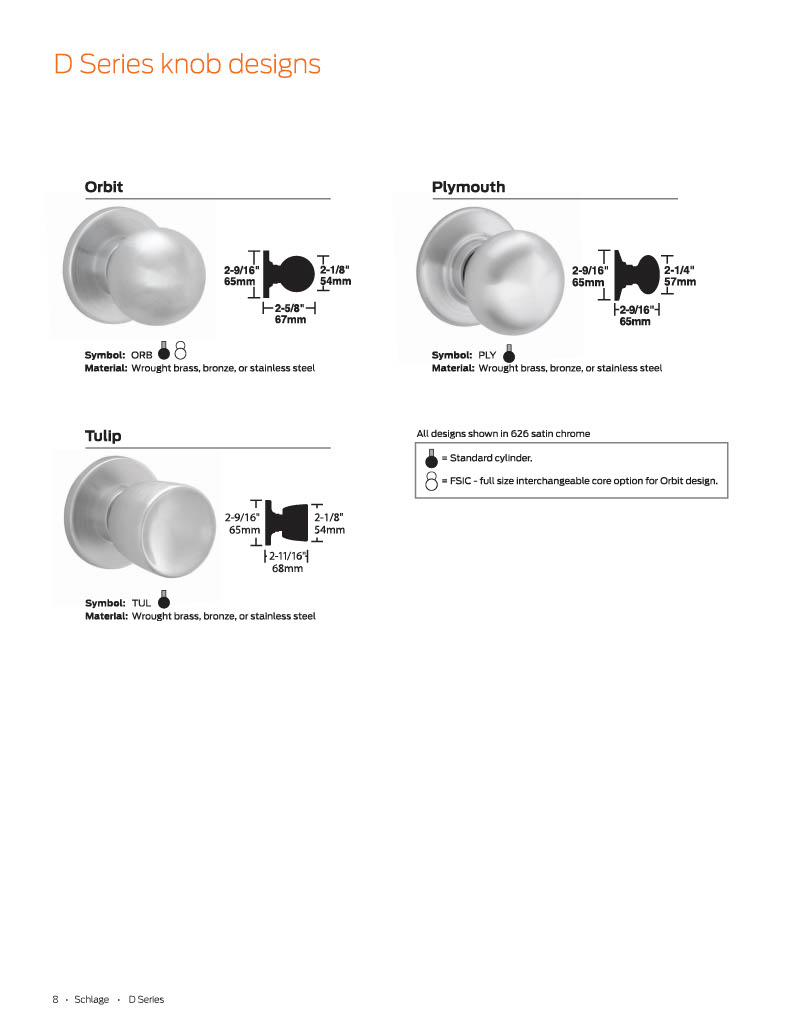 Model:Schlage D82, D82PD, ORB, D82PDORB, D82PDORB605, D82PDORB613, D82PDORB626