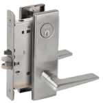 Latchbolt retracted by knob/lever from either side unless outside is locked by key from inside. When locked, latchbolt retracted by key outside or knob/lever inside. Auxiliary latch deadlocks latch- bolt when door is closed. Inside lever is always free for immediate egress.