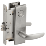 Latchbolt retracted by knob/lever from either side unless outside is locked by key from inside. When locked, latchbolt retracted by key outside or knob/lever inside. Auxiliary latch deadlocks latch- bolt when door is closed. Inside lever is always free for immediate egress.
